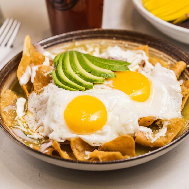 3 scrambled eggs served with sautéed corn tortillas mixed with either salsa verde or roja, sour cream, cotija cheese & avocado.